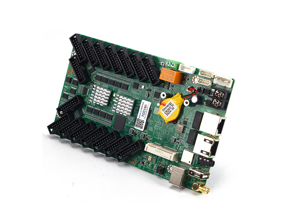 NovaStar TCC160 is an asynchronous LED Display control card that enables remote content publishing and display management via computers or mobile devices. With 16 HUB75E connectors, it ensures easy setup, stable operation, and efficient maintenance. Its compact, cable-saving design suits small-pixel applications like storefronts, vehicle LED displays, and community screens.