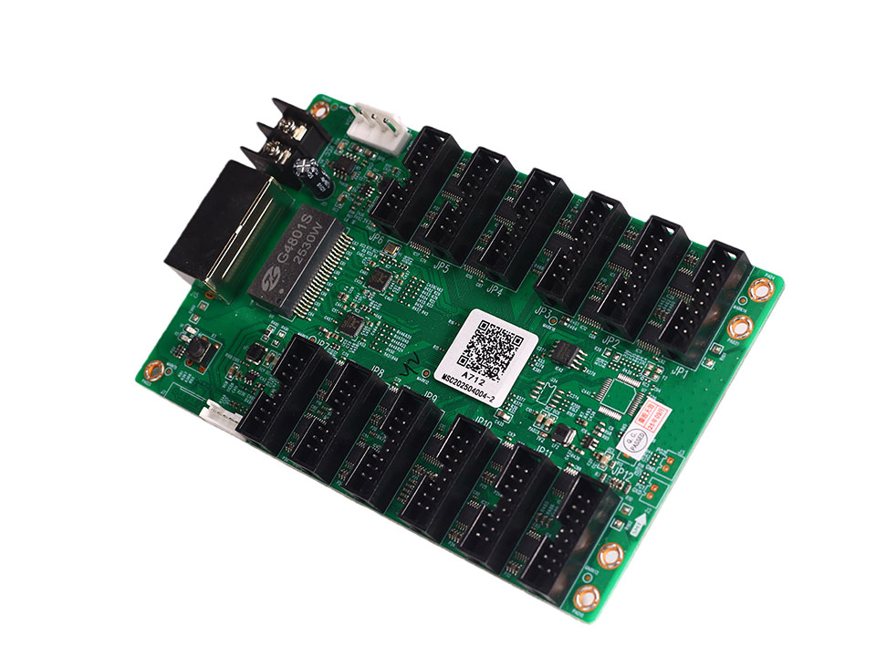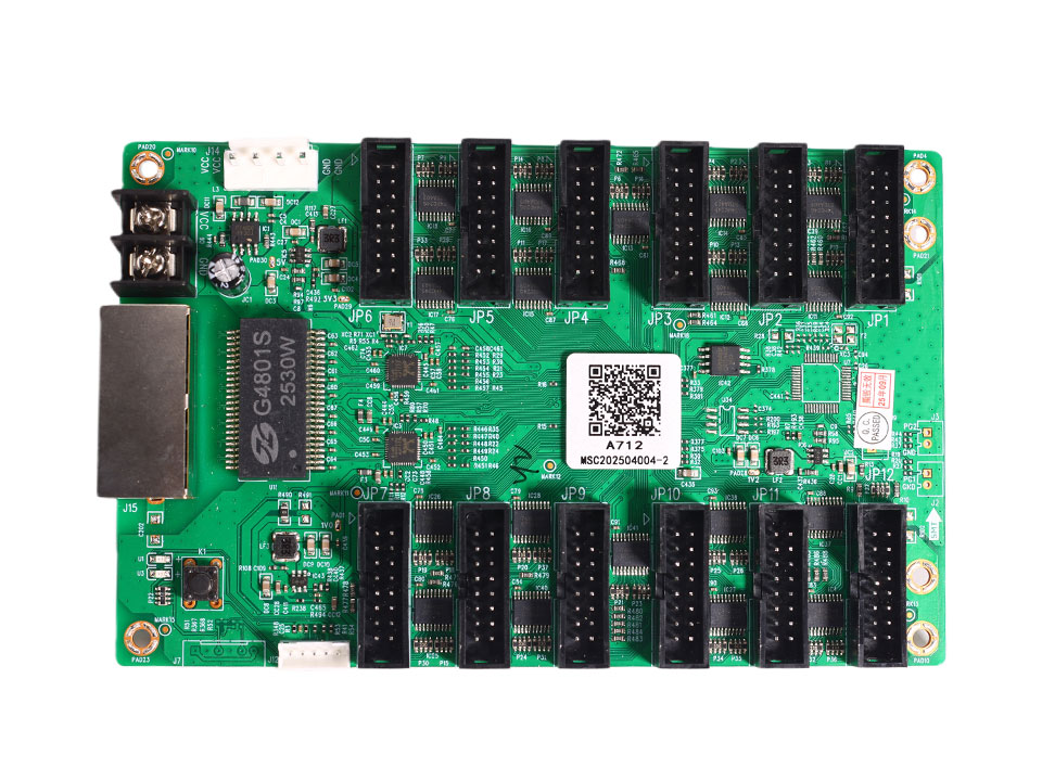 The Mooncell A712 is a standard-type receiving card engineered to deliver exceptional display quality, robust stability, and high cost-efficiency for modern LED screens. As a core component in the Mooncell ecosystem, this card supports a maximum resolution of 512×512@60Hz (PWM) per unit. It is designed for versatility, featuring 12 standard HUB75E interfaces that support up to 24 groups of parallel RGB data, making it ideal for a wide range of indoor and outdoor display applications.