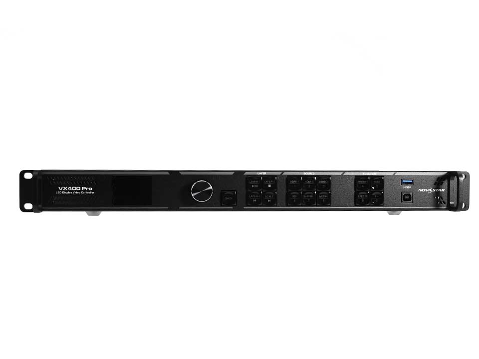 The VX400 Pro is NovaStar’s flagship integrated video controller that combines processing and control functions in a single 1RU rack-mountable unit. Designed for professional LED display applications, it delivers ultra-high resolution control (up to 10,240×8,192 pixels) with advanced image processing capabilities.