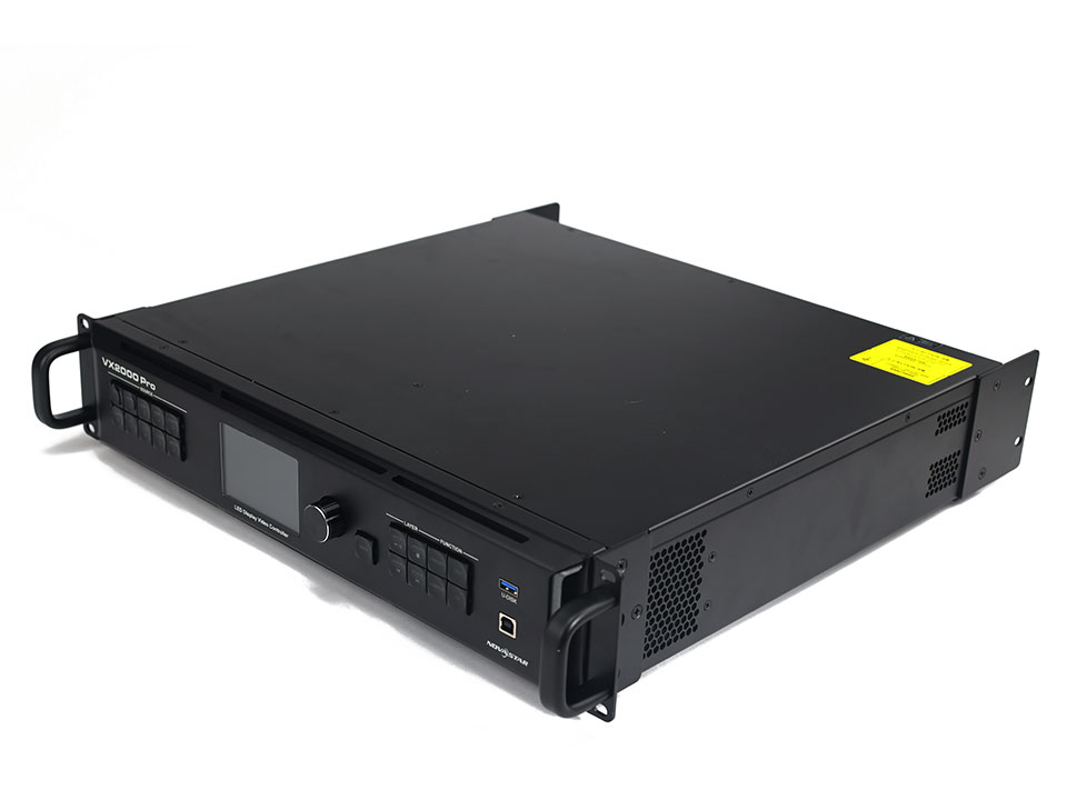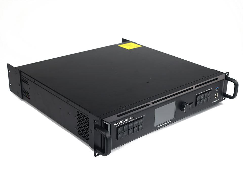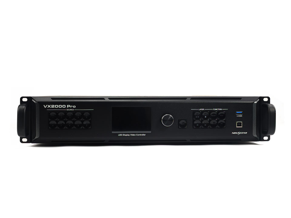 The Novastar VX2000 Pro is an all-in-one controller integrating video processing and control into one device. With 20 Ethernet ports, it supports three modes: video controller, fiber converter, and ByPass. It manages up to 13 million pixels, outputting up to 16,384 × 8,192 pixels, ideal for ultra-wide/high LED screens. Featuring 4K×2K@60Hz input, multi-signal handling, 12 layers, scaling, low latency, and pixel-level calibration, it ensures superior image quality. Control options include front panel knob, NovaLCT, Unico web, and VICP app for ease of use. Built with an industrial-grade casing, it’s robust and suited for complex environments, perfect for medium/high-end rental, stage systems, and fine-pitch LED screens.